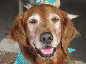 Awesome came into rescue at age 6 yrs. He blessed and enriched our lives for 4 years and 5 months. He was only 10 years & 8 mo. young when he made the journey to the rainbow bridge, too young to leave us so soon. Everyone who met Awesome, knew immediately what an “awesome” boy he was. His name fit him so well. Awesome was such a sweet, gentle boy. To watch Awesome, you knew he loved life and everyone in it. He didn’t just walk, he pranced. He loved food, never questioning what you were giving him. You would think he was starving, inhaling every morsel he could get. He entered rescue as a “fat boy”, almost 100 lbs, and with the help of a lot of green beans and daily exercise, Awesome dropped 30 lbs. He looked Awesome. He loved going to the Dairy Queen for a “pup cup”. He was usually the first one to finish his ice cream and then he would carry the empty cup around hoping somehow miraculously more would appear in his cup. We put in a swimming pool for the boys and had a special shelf built at one end just for Awesome, because at the time, he was afraid of the pool. Within about 10 days of swimming every day, he found his swim legs and he never looked back. To see him swim, you would have thought he’d always been a swimmer. He loved all dogs, and once he got the hang of it, he loved to “hump” anything on 4 legs. We always said he was making up for 6 yrs of no humping. He didn’t care what part of the dog’s body he humped, he just enjoyed humping. He was also a furniture boy. He started out slow, by just getting up at the foot of the bed when we first went to bed, for only about 10-15 min, then he progressed to staying all night. It got to the point if we even went near the bedroom, no matter what time of day or night, he would immediately get on the bed, ready to go to sleep. The sofa was also his and if you wanted him to move he would give you “the look”. Awesome loved going for walks and for rides in the car. Of course his favorite spot was riding shotgun and he gave you the “look” if you chose to sit in his seat. He also loved soft, squeaky toys. His favorite was the jack. He would retrieve balls, as long as no one else was trying to retrieve the same ball, He was not competitive at all and just let Barkley or Sherman get the balls if they wanted them. He was a wonderful Ambass-A-Dog for Rescue A Golden, going along with mom on so many home visits. Everyone wanted to adopt him. He also volunteered at our PetSmart Meet n Greets, Barnes and Noble, Cynosport games, St Francis Adopt-A-Thons, and walked in all the parades RAG participated in and almost made it to the semi-finals in the 2010 Cutest Golden Contest competing against all those cute puppies. Awesome is missed by his mom, dad, sister Sarah, and brothers Barkley and Sherman. Awesome will be in our hearts forever, not only because we loved him, but because he was truly Awesome. We’ll see you at the rainbow bridge Awesome man.
