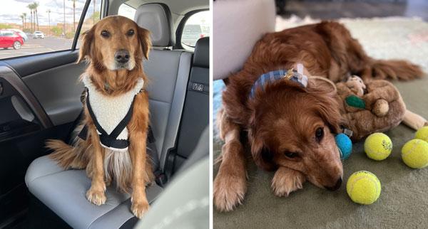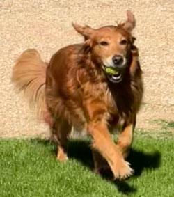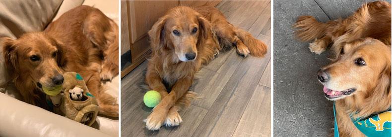 MiMi joined our family in January 2021. She was one of a group of Golden Retrievers who were rescued from a meat market in China. MiMi was the most gentle, sweetest dog you can imagine. She was always by my side; in fact, I called her my little barnacle. She loved chasing squeaky tennis balls, playing with her little squirrels, riding in the car, and watching “All Creatures Great and Small” (she had a special interest in the horses). But mostly, she loved being with her family, snuggling on the couch. Tragically, she was diagnosed with metastatic cancer way too young, and we had to say goodbye. We miss her every day.